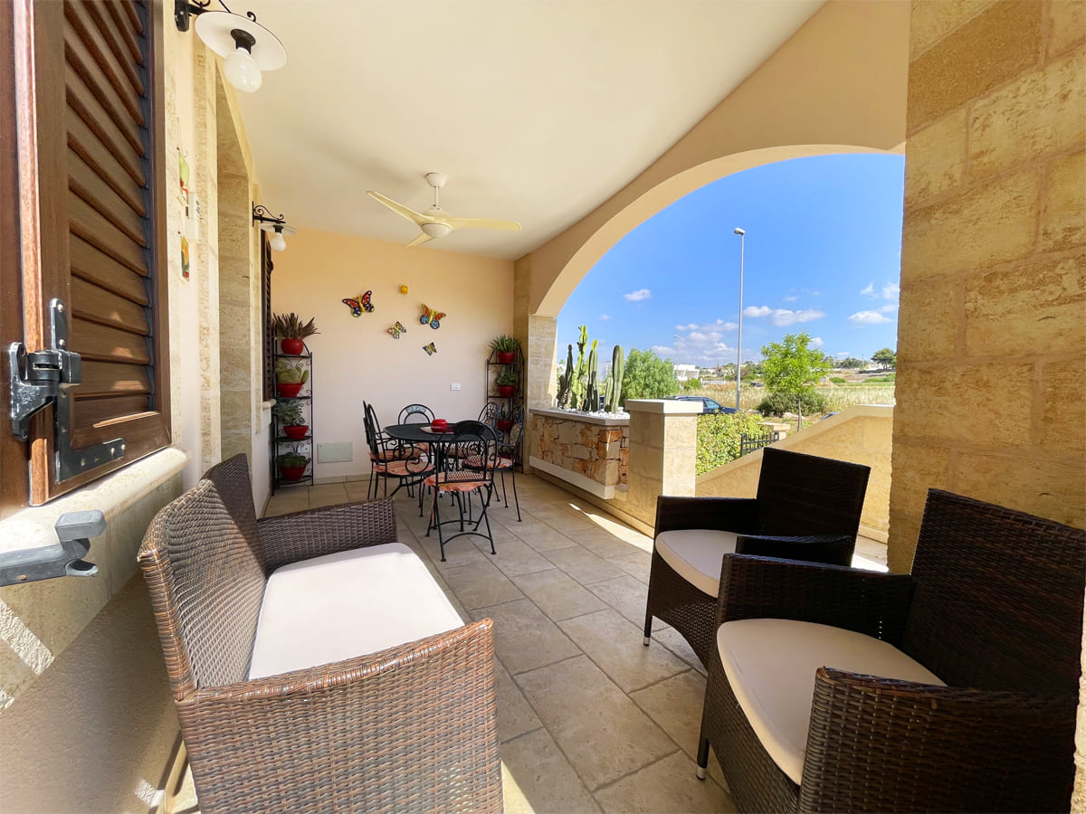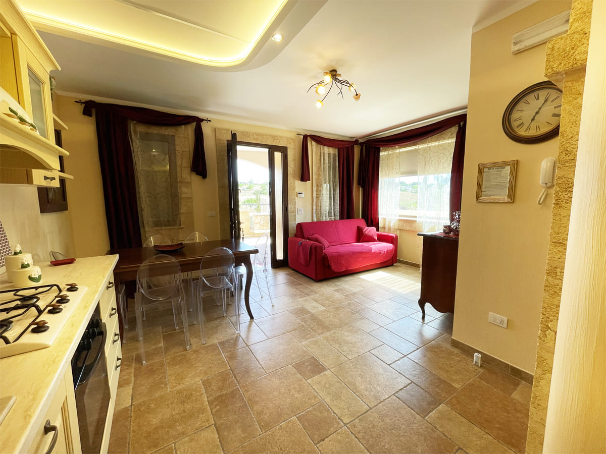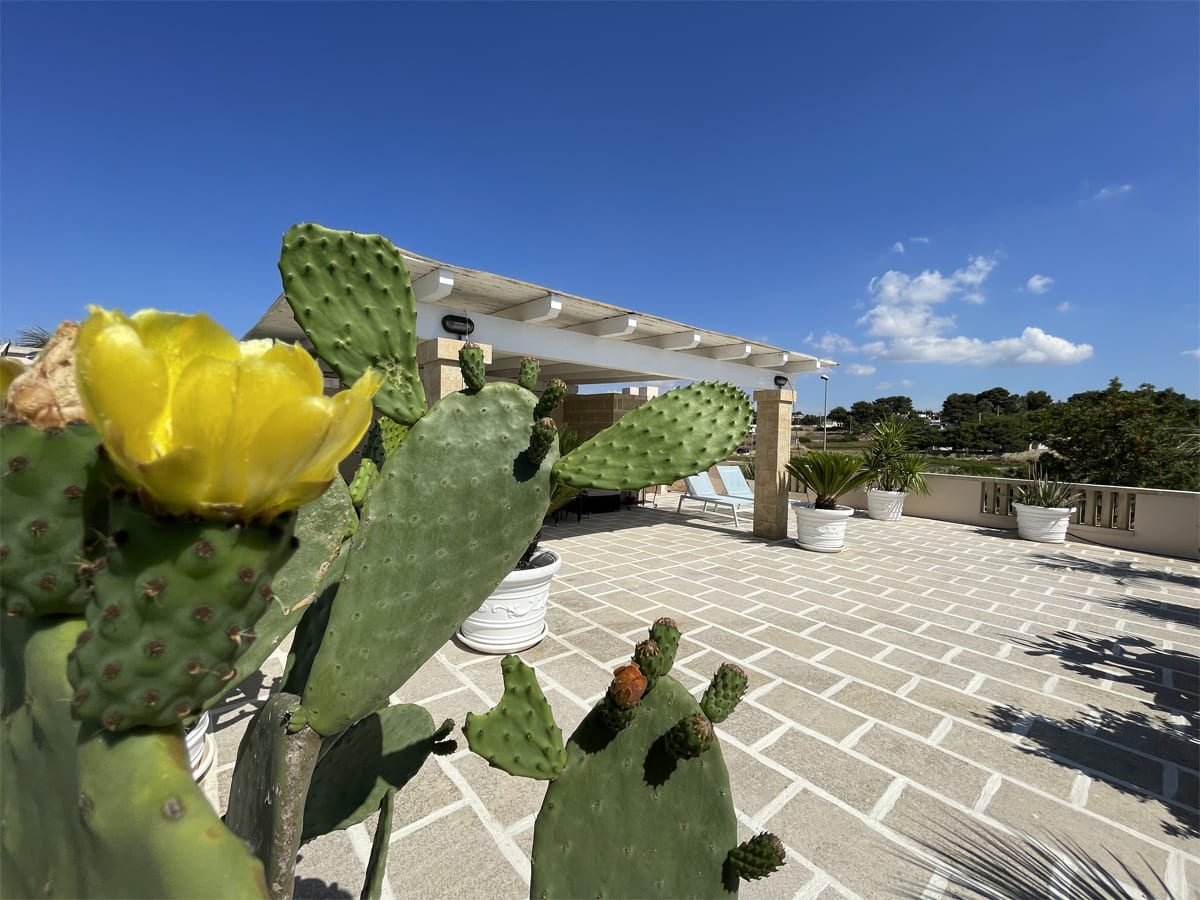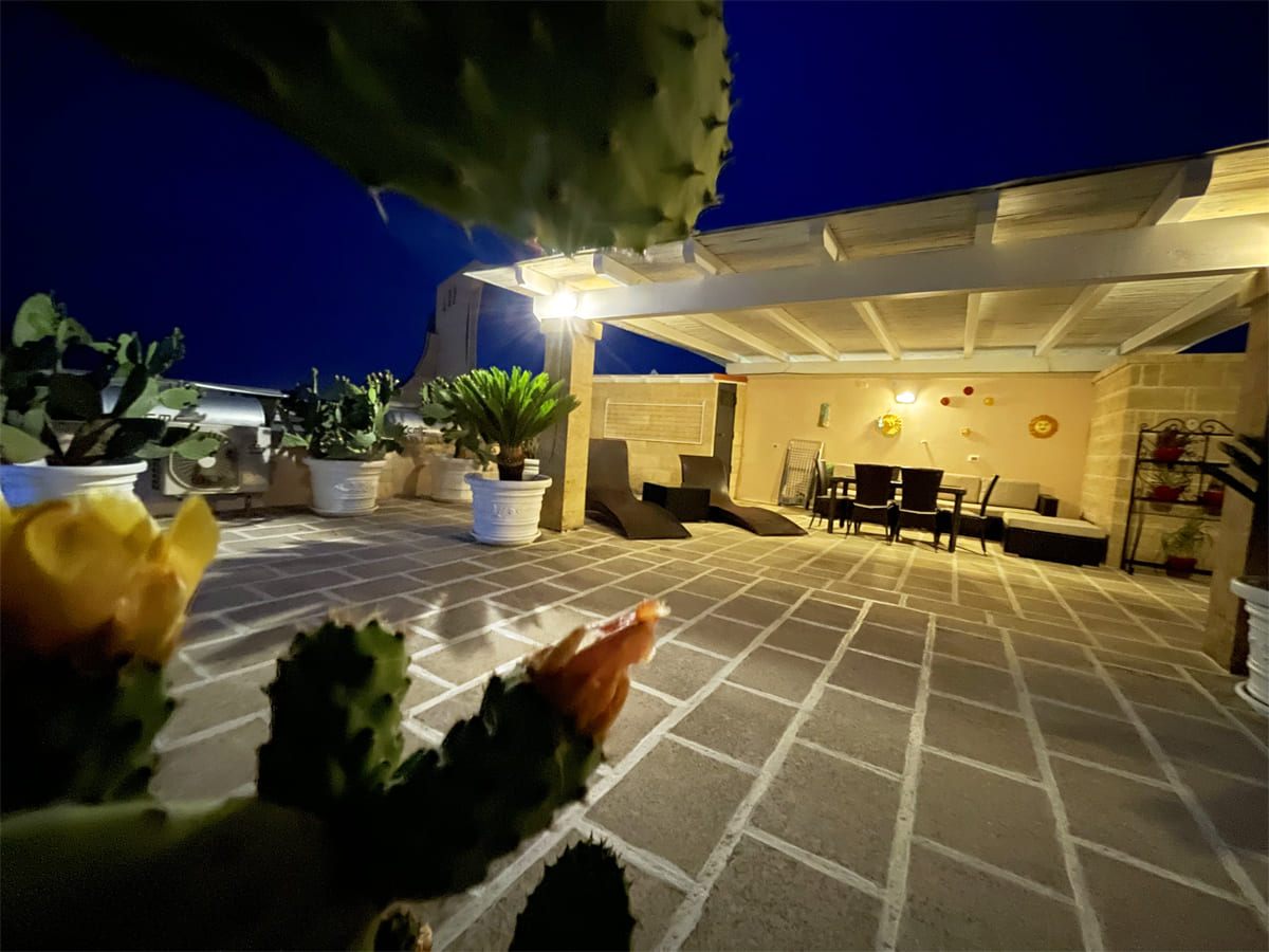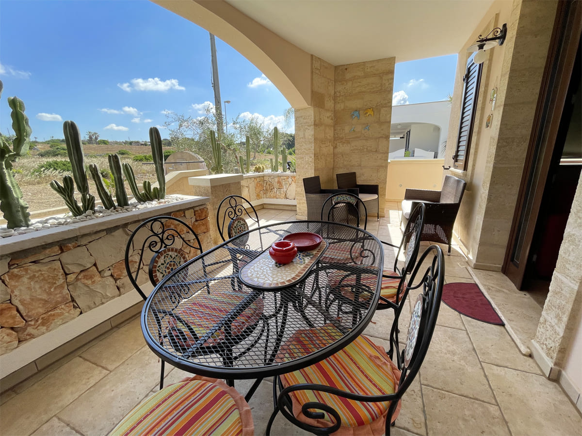 La casa vacanze è un trilocale a piano rialzato strutturato nel seguente modo: dal cancello d'ingresso si accede ad una veranda con doccia esterna (acqua calda/fredda) e mobili da giardino. Internamente la casa si compone di un ampio soggiorno con cucina a vista totalmente attrezzata e divano letto (2 posti letto), 2 camere da letto e un bagno. Infine, tramite una scala esterna, si accede alla vera attrazione della casa, ovvero una grandissima terrazza vista mare arredata con mobili da giardino, doccia esterna (acqua calda/fredda), barbeque e zona relax dove poter prendere il sole in tranquillità.