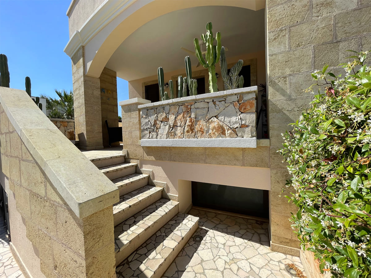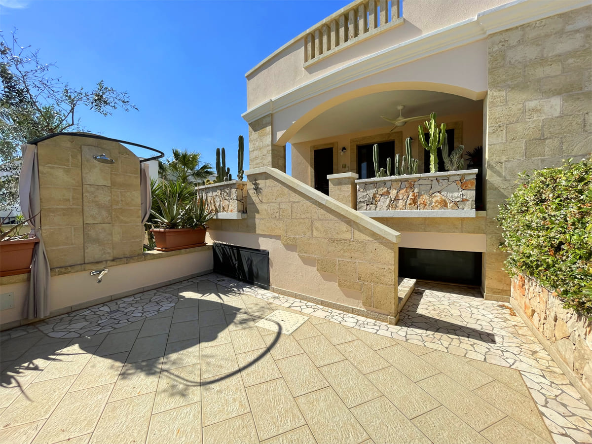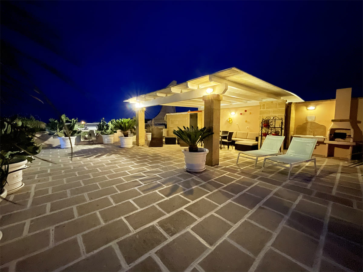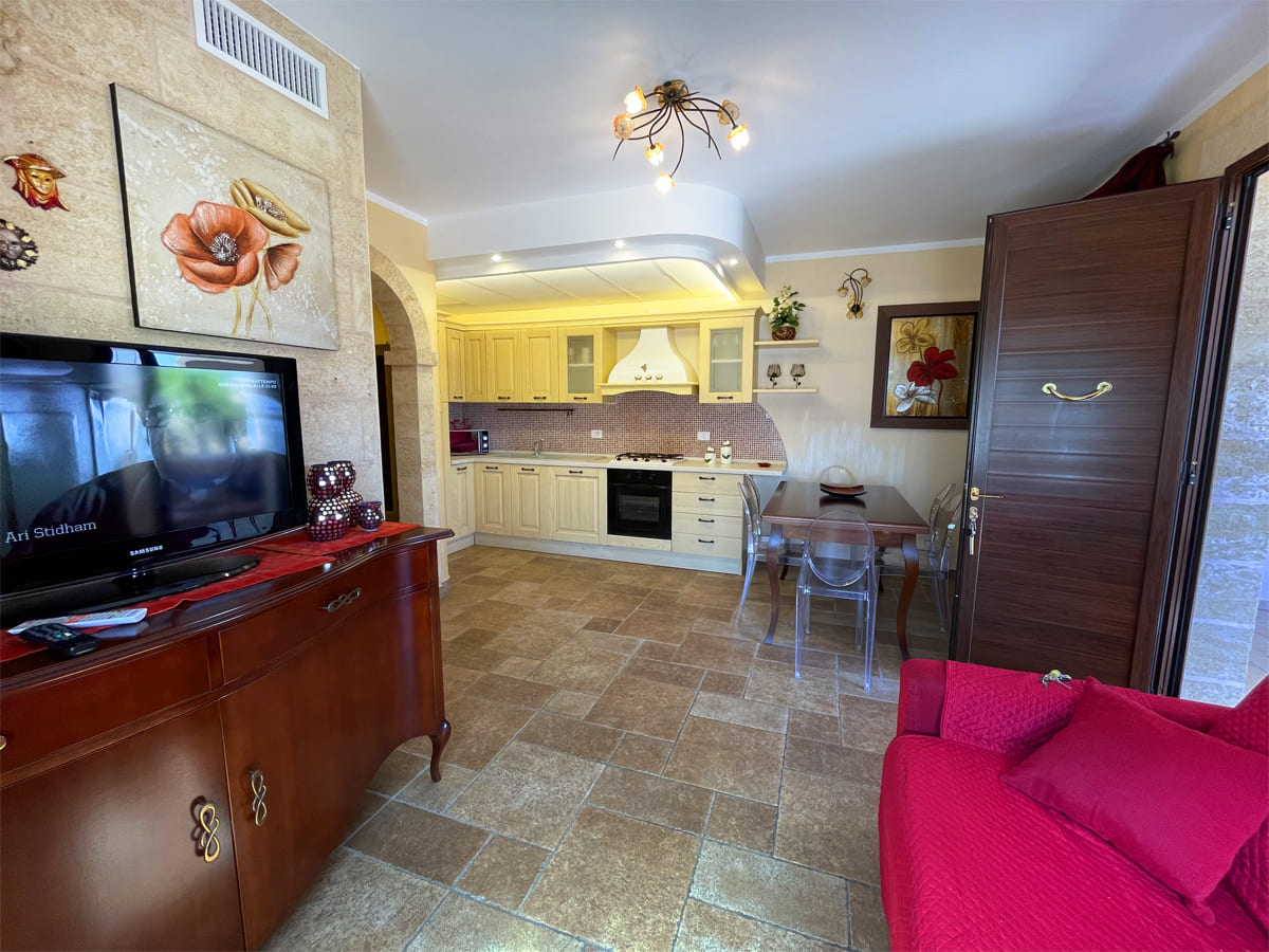 La casa vacanze è un trilocale a piano rialzato strutturato nel seguente modo: dal cancello d'ingresso si accede ad una veranda con doccia esterna (acqua calda/fredda) e mobili da giardino. Internamente la casa si compone di un ampio soggiorno con cucina a vista totalmente attrezzata e divano letto (2 posti letto), 2 camere da letto e un bagno. Infine, tramite una scala esterna, si accede alla vera attrazione della casa, ovvero una grandissima terrazza vista mare arredata con mobili da giardino, doccia esterna (acqua calda/fredda), barbeque e zona relax dove poter prendere il sole in tranquillità.