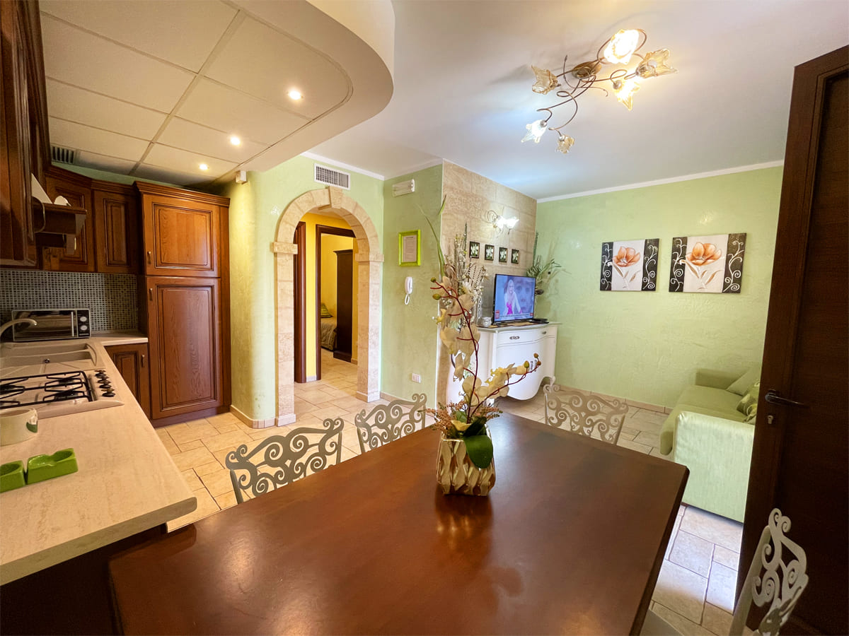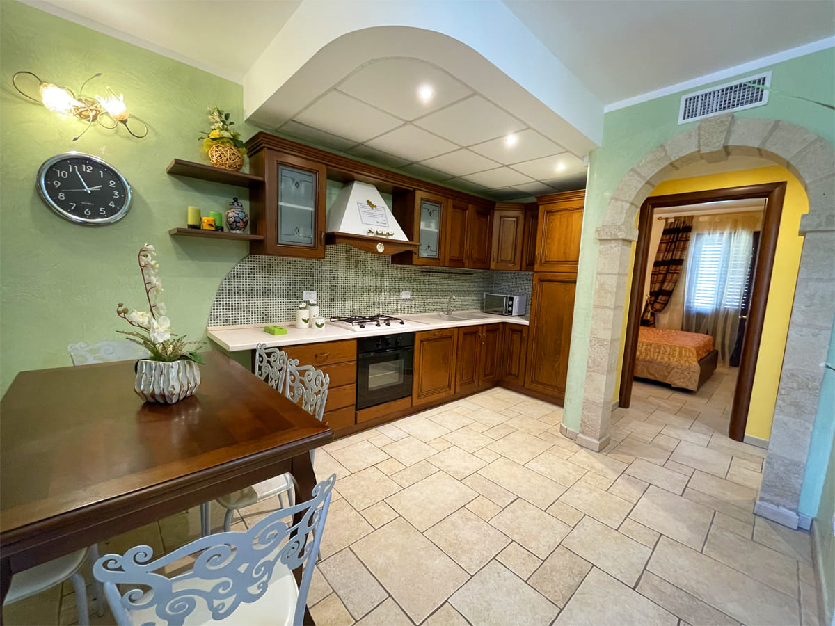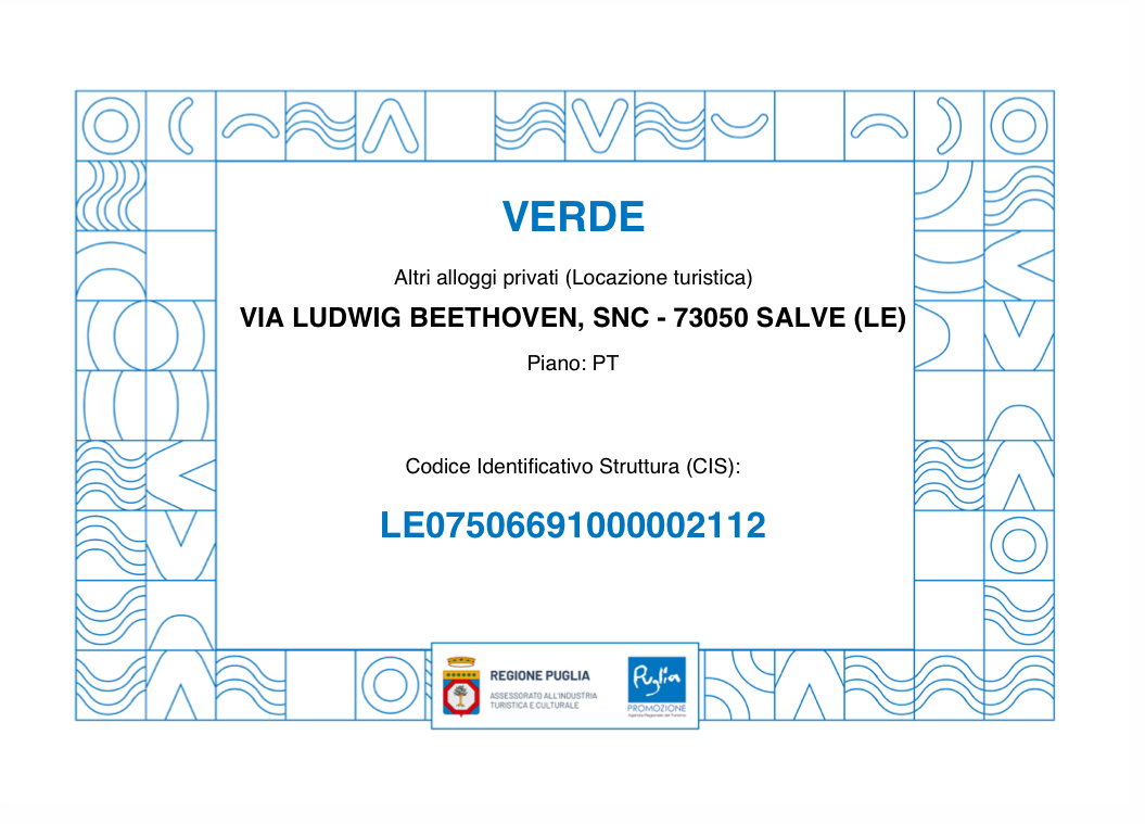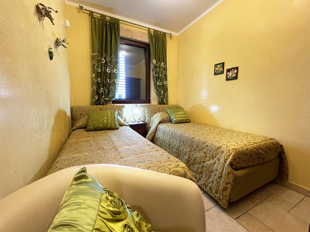 La casa Verde è un trilocale a piano rialzato strutturato nel seguente modo: dal cancello d'ingresso si accede ad una veranda con doccia esterna (acqua calda/fredda) e mobili da giardino. Internamente la casa si compone di un ampio soggiorno con cucina a vista totalmente attrezzata e divano letto (2 posti letto), camera matrimoniale, camera con letti singole e un bagno. Infine un balcone retrostante oltre ad ampliare gli spazi esterni della casa funge da zona lavanderia, mettendo a disposizione lavatrice e lavello per il bucato.